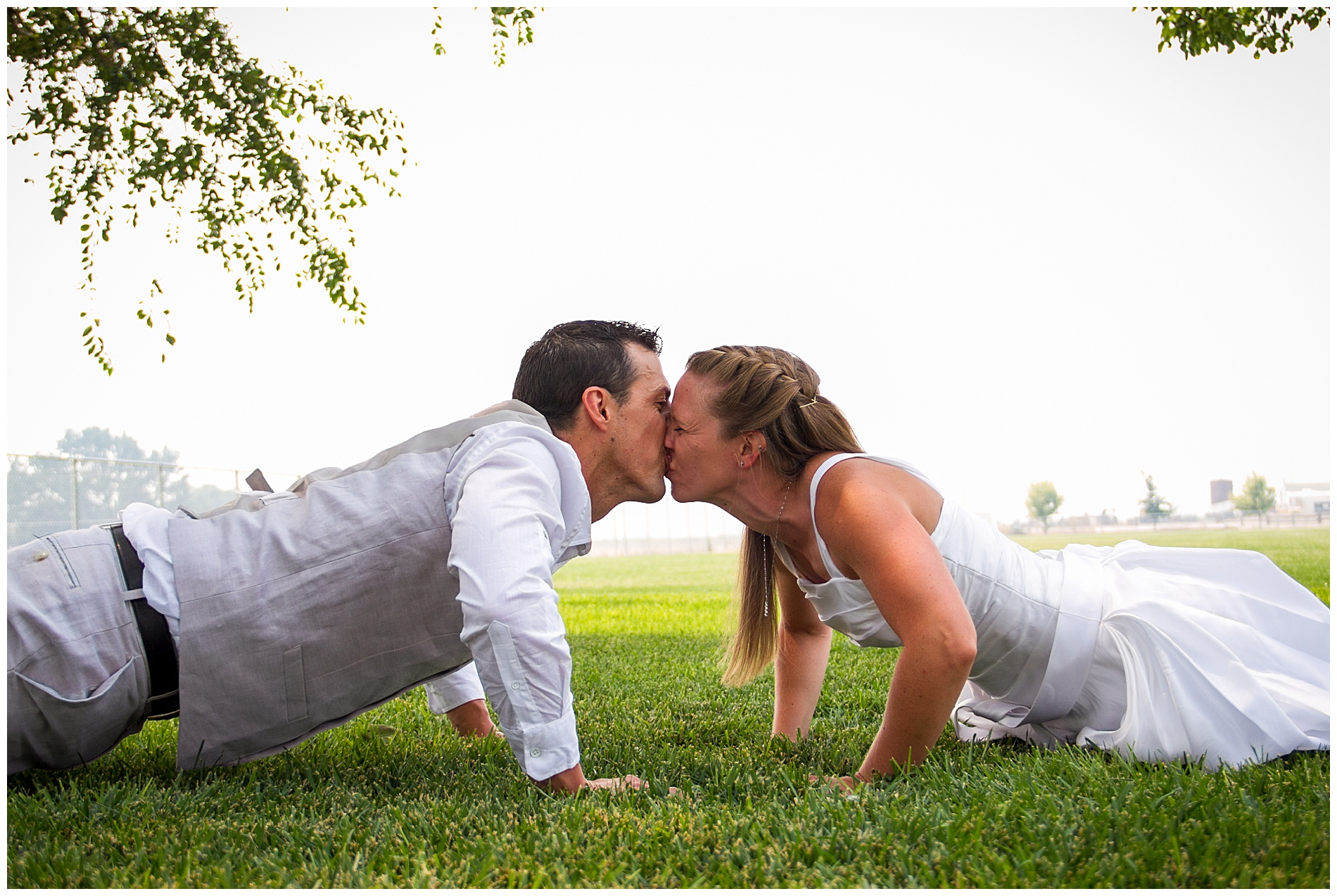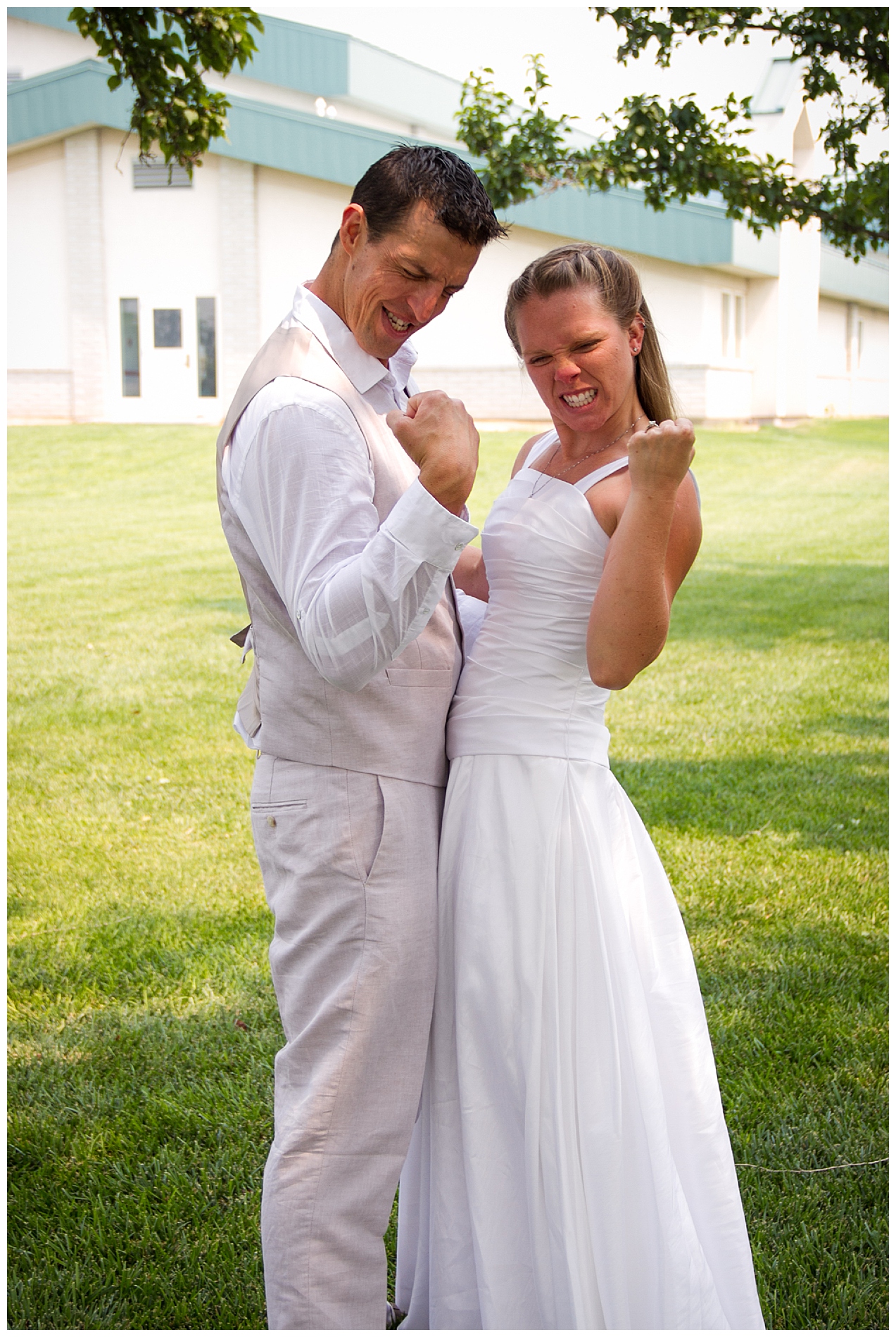 In August, I photographed David and Connie’s wedding here in Ontario. The decor was simple and the program laid back, allowing their joy to take center stage–these two barely stopped smiling all day! They proved to everyone that your marriage vows are what make a wedding, not expensive catering, fancy cakes, the first dance, or even the bouquet and garter tosses. Don’t get me wrong, I love flowers, toasts, hors d’oeuvres, and all that as much as anyone, but it was nice to see that a wedding can be stripped to its essence and it’s still beautiful. I particularly enjoyed being able to incorporate little things that were important to them, like CrossFit, into their photography. Okay, so this first picture of dumbbells isn’t all that CrossFit-y, but I couldn’t resist since the weights spelled out their wedding date.